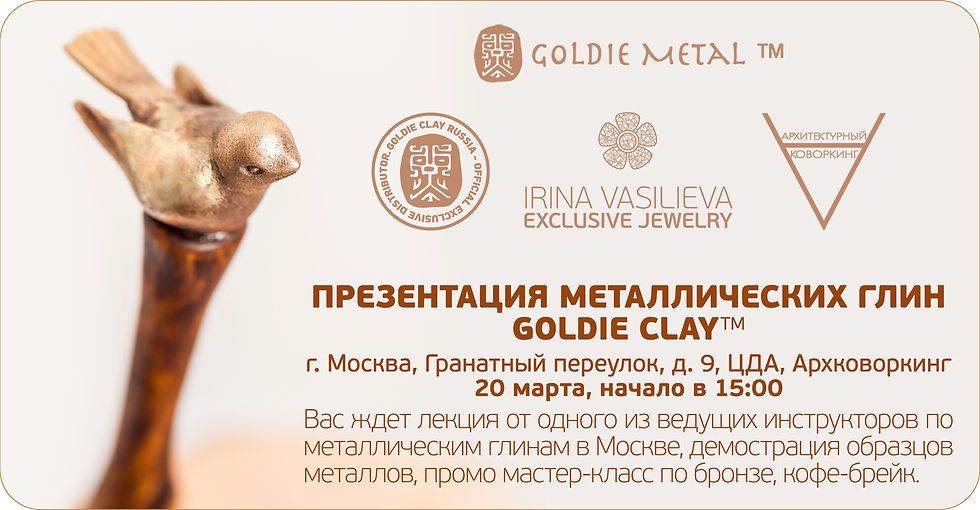 В это воскресенье, 20 марта, в 15:00 в уютном помещении архитектурного коворкинга в ЦДА (Гранатный, 9) состоится презентация линейки продукции от нашего партнера, представителя производителя металлических глин, Goldie Metal™